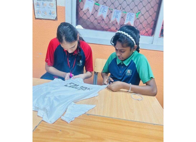 On Tuesday, students actively participated in the Digital Pledge by submitting personal water-saving commitments via an online form, marking the beginning of their sustainable journey. Wednesday featured a concise and informative presentation on simple water-saving hacks and creative upcycling ideas. Following this, students enthusiastically engaged in a DIY Upcycling Challenge, repurposing old clothes into practical items such as scrunchies, bows, and tote bags without sewing, effectively promoting reuse and reducing plastic bag dependency.